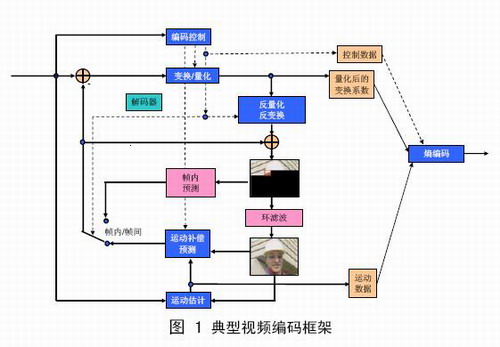 AVS視頻與MPEG標準都采用混合編碼框架(見圖1),包括變換、量化、熵編碼、幀內(nèi)預(yù)測、幀間預(yù)測、環(huán)路濾波等技術(shù)模塊,這是當前主流的技術(shù)路線。AVS的主要創(chuàng)新在于提出了一批具體的優(yōu)化技術(shù),在較低的復(fù)雜度下實現(xiàn)了與國際標準相當?shù)募夹g(shù)性能,但并未使用國際標準背后的大量復(fù)雜的專利。AVS-視頻當中具有特征性的核心技術(shù)包括:8x8整數(shù)變換、量化、幀內(nèi)預(yù)測、1/4精度像素插值、特殊的幀間預(yù)測運動補償、二維熵編碼、去塊效應(yīng)環(huán)內(nèi)濾波等。