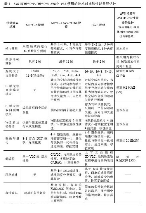 AVC/H.264的測試報告,AVS在編碼效率上與其處于同等技術(shù)水平。