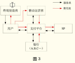 該模式中,第三方支付服務提供商是獨立于銀行和移動運營商之外的經(jīng)濟實體,其自己拓展用戶,與銀行及移動運營商協(xié)商合作,提供手機支付業(yè)務,見圖3。