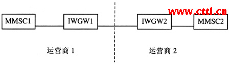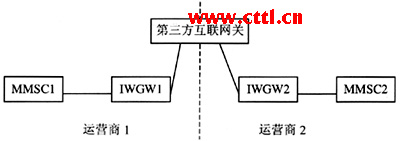 圖1 點對點多媒體消息業(yè)務網(wǎng)間互聯(lián)網(wǎng)絡(luò)結(jié)構(gòu)示意圖