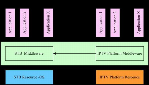 位于IPTV設(shè)備底層系統(tǒng)資源(包括硬件、操作系統(tǒng)和網(wǎng)絡(luò)資源)和應(yīng)用程序之間的獨(dú)立的系統(tǒng)軟件或通用服務(wù)程序;