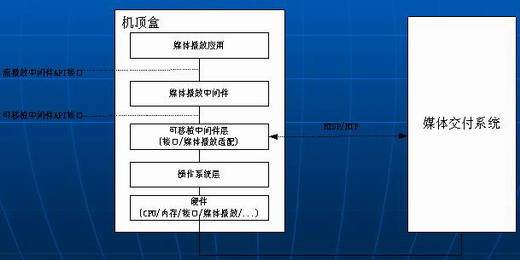 中間系統(tǒng)層架構(gòu)是一個(gè)基于軟件模塊結(jié)構(gòu)的抽象層次定義;它定義了中間件模塊在機(jī)頂盒中是怎樣被組織的以及在整個(gè)機(jī)頂盒軟件體系結(jié)構(gòu)中處于什么位置;