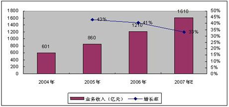 賽迪顧問預(yù)測2007年底,我國增值電信業(yè)務(wù)市場收入有望超過1600億元,增速高達33%,移動增值業(yè)務(wù)收入規(guī)模將達980億元左右,占比高達61.25%。2007年增值電信業(yè)務(wù)經(jīng)營企業(yè)的數(shù)量將會出現(xiàn)負增長,量的下降帶來質(zhì)的提升,表明增值電信業(yè)市場已經(jīng)趨于良性發(fā)展。
