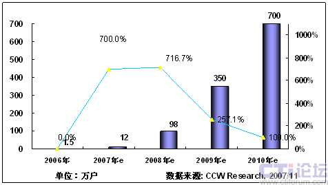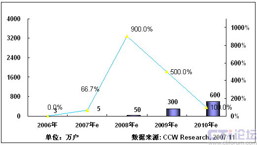 2008年,隨著3G在中國(guó)商用,以及奧運(yùn)帶來豐富視頻內(nèi)容,將推動(dòng)手機(jī)電視作為一項(xiàng)重要的移動(dòng)增值業(yè)務(wù)將進(jìn)入市場(chǎng)發(fā)展期;同時(shí)隨著網(wǎng)絡(luò)、終端、內(nèi)容、商業(yè)模式等因素的發(fā)展,產(chǎn)業(yè)鏈初步完善,看好手機(jī)電視業(yè)務(wù)的產(chǎn)業(yè)鏈各環(huán)節(jié)大力介入,北京奧運(yùn)會(huì)將大大激發(fā)用戶使用手機(jī)電視業(yè)務(wù)的熱情,從而推動(dòng)手機(jī)電視進(jìn)入快速發(fā)展階段。根據(jù)計(jì)世資訊預(yù)計(jì),2008年中國(guó)手機(jī)電視用戶將達(dá)到400萬。