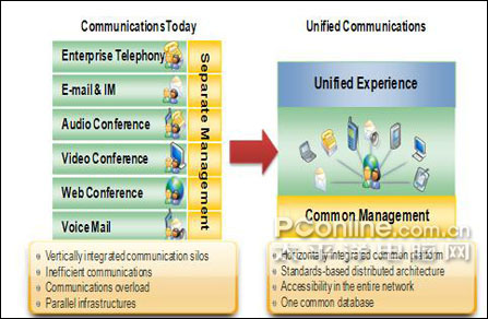 作為PC操作系統(tǒng)和辦公軟件市場上的霸主,微軟對統(tǒng)一通信這塊超級大蛋糕虎視眈眈。早在2006年,微軟就宣布與北電合作進軍“統(tǒng)一通信”。微軟將Unified Communications定義為“統(tǒng)一溝通”。官方詮釋:微軟統(tǒng)一溝通技術(shù)將電子郵件、即時消息、語音、音頻、視頻和 Web 會議等諸多技術(shù)融入到了一個單一的直觀系統(tǒng)中,這是一個以人為本的系統(tǒng),技術(shù)只是輔助手段。而且它完全內(nèi)置于業(yè)界熟知和信任的 Microsoft Office system 中。公司們可以使用能夠充分利用其現(xiàn)有數(shù)據(jù)和電信基礎(chǔ)結(jié)構(gòu)的單一統(tǒng)一溝通平臺來取代相沖突的各種不同系統(tǒng)。IT 部門可以用簡化管理和降低總擁有成本的精簡基礎(chǔ)結(jié)構(gòu)交付更靈活、更安全的溝通。