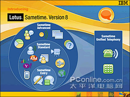 2008奧蘭多VoiceCon大會,IBM在大會上宣布推出Sametime統(tǒng)一電話—集VoIP、視頻會議和即時消息于一體的產(chǎn)品。在大會召開的前一周,IBM公司承諾進一步加強IBM Lotus Sametime消息與會議套件,將進行為期3年、投資10億美元的研發(fā)。早在2007年的VoiceCon年會上,IBM就公布了其統(tǒng)一通信與協(xié)作策略工作計劃,準備將IBM Lotus Sametime軟件擴展成含有全新通話集成軟件的產(chǎn)品系列。IBM還推出了Lotus Notes和 Lotus Domino8(ND8),將協(xié)作、Web 2.0、郵件、統(tǒng)一通信、應(yīng)用集成全面整合,IBM稱ND8未來將統(tǒng)一整合桌面應(yīng)用,成為未來的企業(yè)桌面。