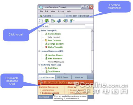 Lotus Sametime Advanced 軟件將擁有業(yè)界第一套實時社區(qū)工具,為信息查找和群組的實時知識共享提供更多方便。這樣,用戶在遇到問題時可立即向社區(qū)求助,而無需花費大量時間苦苦尋找能提供幫助的人。此外,Lotus Sametime Advanced將放開對用戶的聯(lián)系人列表的限制,幫助他們創(chuàng)建新的社區(qū)和聯(lián)系人。