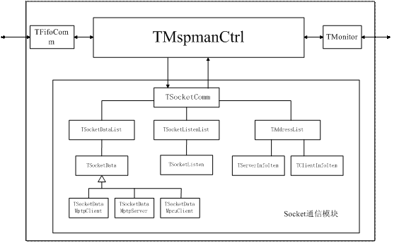 - TSocketComm類是Socket通信的總控類,它負(fù)責(zé)管理MSPMAN模塊的Socket通信,包括與MPCU和MPTU模塊的鏈路維護(hù)、收發(fā)消息等。