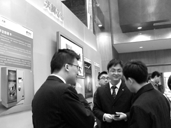 在江蘇3G業(yè)務(wù)商用發(fā)布會現(xiàn)場,工作人員正在介紹無線視頻監(jiān)控應(yīng)用