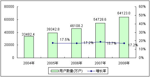 中國移動(dòng)通信產(chǎn)業(yè)發(fā)展可以追溯到1987年,當(dāng)時(shí)中國確定了以TACS制式作為模擬制式蜂窩移動(dòng)電話的標(biāo)準(zhǔn),首次為中國移動(dòng)通信技術(shù)產(chǎn)業(yè)化發(fā)展奠定了基礎(chǔ)。隨著通信技術(shù)的進(jìn)步,數(shù)字化的GSM移動(dòng)通信網(wǎng)絡(luò)制式快速取代了原有的TACS制式。進(jìn)入2000年以后,伴隨中國改革開放的深入和經(jīng)濟(jì)的進(jìn)一步轉(zhuǎn)型,移動(dòng)通信技術(shù)得到迅猛發(fā)展,手機(jī)普及率得到迅速提高。2004~2008年,中國移動(dòng)電話用戶數(shù)量每年都保持著17%以上的快速增長,截止到2008年底,中國移動(dòng)電話用戶數(shù)量已經(jīng)達(dá)到6.41億戶,與2004年相比增長了近一倍。