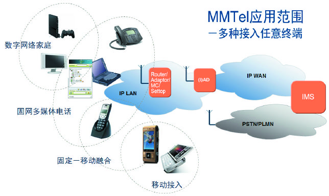 對于消費者而言,MMTel意味著自由度更高的溝通方式:無論是固話、手機還是PC,都可以同時進行語音、視頻通話,文字、圖片、音像的傳送或者共享等多項業(yè)務,而且能夠在固定終端和移動終端之間自由切換。對于運營商來說,MMTel則意味著從語音通話和短消息到多媒體電話業(yè)務的一次全面升級。MMTel標準中定義了多種多樣的多媒體業(yè)務和補充業(yè)務,一方面豐富了原有的電路交換業(yè)務,為運營商帶來新的利潤源泉,另一方面又融合了互聯(lián)網(wǎng)多媒體業(yè)務的諸多優(yōu)勢,可以幫助全業(yè)務運營商有效地吸引終端用戶。