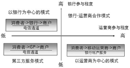 系統(tǒng),通過定制終端,電信運營商可以將各種先進的移動應(yīng)用提供給用戶,使用戶獲得良好的移動化生活體驗。因此,電信運營商在移動支付方面具有較好的用戶資源和營銷渠道?梢,電信運營商和銀行的協(xié)作程度在很大程度上決定了移動支付商業(yè)模式的績效水平。