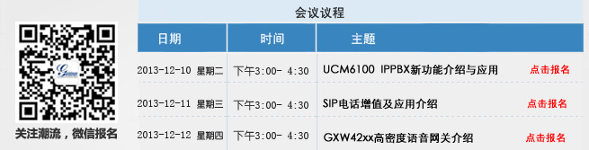 | 周二UCM專場報(bào)名 周三IP電話專場報(bào)名 周四網(wǎng)關(guān)專場報(bào)名 | ||||||