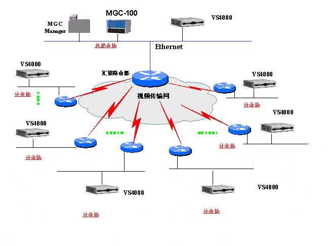 該項目是世界銀行支援中國西北發(fā)改辦的視頻會議系統(tǒng),主要是用于西部各政府機關(guān)和大學(xué)之間進行視頻會議和遠程培訓(xùn)之用。初期的項目規(guī)模為11個會場,組網(wǎng)方式為IP組網(wǎng)方式。