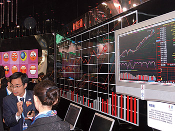 中國移動(dòng)展出的“財(cái)信通”業(yè)務(wù)受到參觀者的廣泛關(guān)注