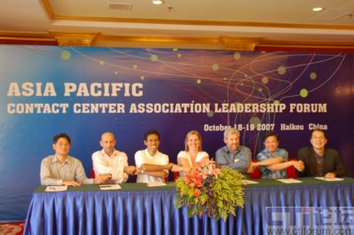 2007年10月18-19日,亞太呼叫中心領導人會議在中國?谂e行。中國大陸CNCCA、香港HKCCA、臺灣TCCDA以及澳大利亞ATA和CCMA、新加坡CCAS、印度尼西亞ICCA等共7個亞太地區(qū)呼叫中心協(xié)會的領導人參與了會議研討。各協(xié)會一致決定發(fā)起成立“亞太客服與呼叫中心聯(lián)盟”(Asia Pacific Contact Center Association Leaders),就涉及亞太區(qū)域的呼叫中心協(xié)會間合作和溝通事務發(fā)揮領導作用。亞太呼叫中心協(xié)會領導人簽署合作備忘錄