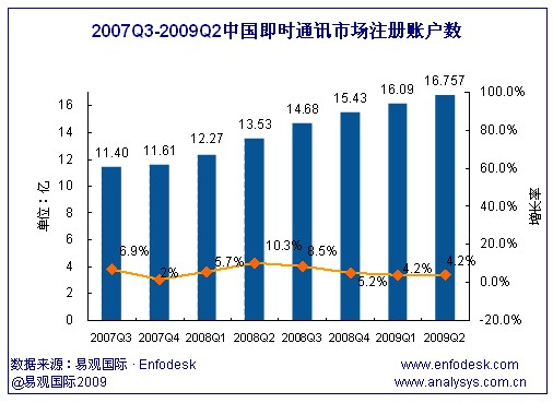 09年2季度中國即時通訊累計(jì)注冊賬戶數(shù)達(dá)16.76億