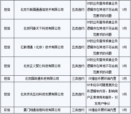 同時(shí),8家SP本地業(yè)務(wù)數(shù)據(jù)2010年5月在相關(guān)系統(tǒng)進(jìn)行暫停,月底進(jìn)行全面清除;其本地業(yè)務(wù)的計(jì)費(fèi)、結(jié)算和付款工作從2010年5月開始全部終止;此外,1年內(nèi)不接受該8家SP的新接入申請(qǐng)。