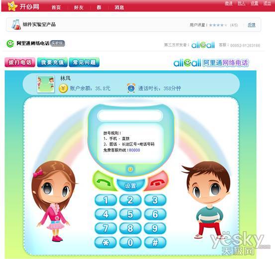 近日,阿里通網絡電話與國內著名社交網站開心網合作,推出了定位于年輕族群,專為SNS網站量身定做的flash版網絡電話。開心網用戶只需在組件實驗室中添加阿里通flash網絡電話,無須注冊和安裝任何插件,即可直接在開心網網頁上撥打全球任意的手機和固話。據悉,為了讓更多的用戶能體驗到flash網絡電話的便利,只要開心網內的好友達到5人,添加組件成功后都可獲贈一定的免費通話時長。
