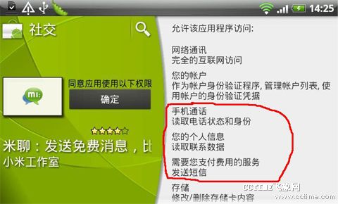 目前,很多手機社交應(yīng)用中加入了對用戶關(guān)系的抓取,這些應(yīng)用在用戶需要尋求社交關(guān)系時,將讀取用戶通訊錄中的信息,并進行自動匹配。其中包括手機廠商HTC的HTCSENSE,UCWEB中的UC樂園,以及最近火熱的kik類應(yīng)用,如KikMessenger,米聊、微信等。多數(shù)用戶表示對于此種抓取通訊錄的行為表示疑慮。