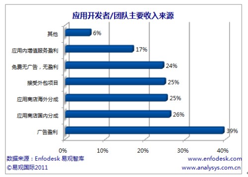 易觀國際(Analysys International)分析認(rèn)為應(yīng)用開發(fā)者難以獲取盈利分成的主要原因在于用戶對應(yīng)用本身沒有付費下載習(xí)慣,應(yīng)用商店缺少對應(yīng)用的推廣,但應(yīng)用開發(fā)者難以盈利也和移動應(yīng)用同質(zhì)化嚴(yán)重,難以被用戶認(rèn)可本身強相關(guān)。