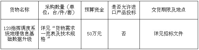 120指揮調(diào)度系統(tǒng)地理信息基礎數(shù)據(jù)升級采購項目招標公告
