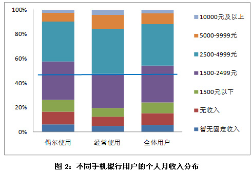 根據(jù)調(diào)查結(jié)果顯示,手機(jī)銀行業(yè)務(wù)在手機(jī)網(wǎng)民中的使用率有顯著提高,2010年7月的調(diào)查結(jié)果為36.8%,2011年2月已經(jīng)升至52.2%。同時(shí),手機(jī)銀行業(yè)務(wù)開始逐漸向中年人群擴(kuò)散,相對應(yīng)的,目前手機(jī)銀行用戶的個(gè)人月收入均高于去年7月用戶的收入水平。人群結(jié)構(gòu)的優(yōu)化,預(yù)示著手機(jī)銀行業(yè)務(wù)良好的發(fā)展前景。