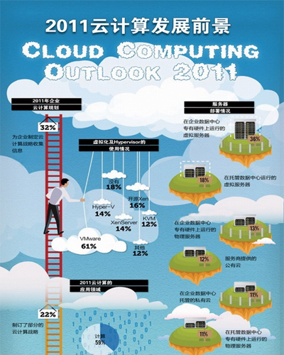 《2011云計(jì)算發(fā)展前景調(diào)查報(bào)告》的目標(biāo)在于收集企業(yè)用戶(hù)中使用虛擬化和云計(jì)算技術(shù)的信息,有助于公眾了解云計(jì)算技術(shù)及其服務(wù)的演進(jìn)。這份調(diào)查報(bào)告的結(jié)果來(lái)自2011年第二季度對(duì)BitNami、Cloud.com和Zenoss開(kāi)源與系統(tǒng)管理社區(qū)中500多位用戶(hù)的調(diào)查。其目的是想看清楚云計(jì)算技術(shù)的使用趨勢(shì),并對(duì)部署虛擬基礎(chǔ)設(shè)施提供參考。
