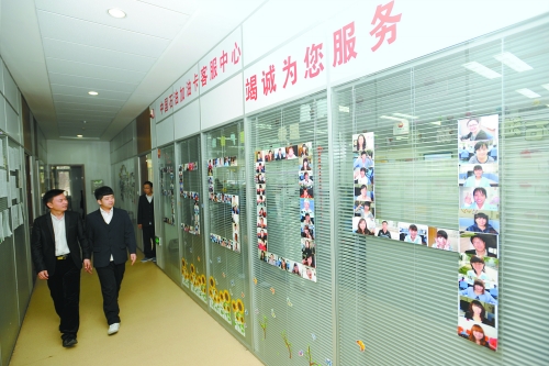 推開中國石油加油卡客服中心的大門,50個接聽坐席進入眼簾。身著白色上衣、藍色馬甲的客服人員忙碌地接聽著各地客戶打來的電話。在這個中心的西墻上“一卡在手,全國加油”八個大字非常醒目。