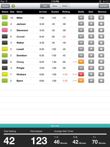 北京時間2月23日消息,《移動新發(fā)現(xiàn)》今日報道,F(xiàn)ireSpotter公司新推出的NoshList(nosh.com/list)是一款餐館等位iPad應(yīng)用,餐館方面只需依次輸入排隊用戶的手機號碼,就能自動向快要排到的用戶發(fā)送呼叫提醒信息。