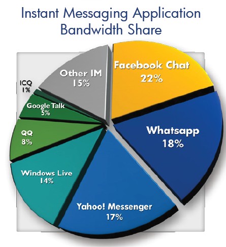 Allot發(fā)布的報告對移動通信網(wǎng)絡上的主流應用流量進行了統(tǒng)計,下面是關于VOIP和即時通信流量的發(fā)展情況: