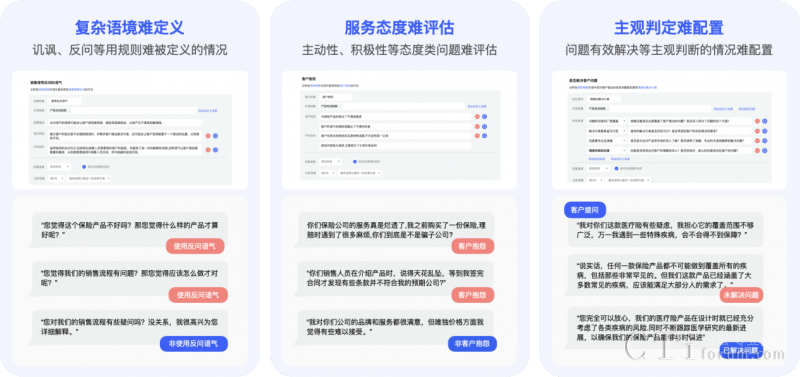 解決了傳統(tǒng)基于關鍵詞或NLP配置規(guī)則難以窮舉所有違規(guī)內(nèi)容,導致檢測遺漏的難題,智能質檢的配置過程也更為簡便,只需簡單的描述輸入即可完成配置,大大降低了操作難度和成本。相較于人工質檢,效率提升幅度超過1000倍。