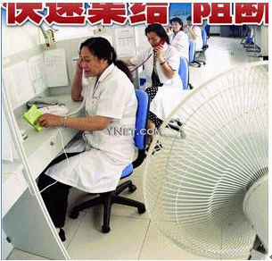 使用的電話是五顏六色的家用電話。 桌上沒有電腦,不用耳邁, 也不見什么資料夾。工作人員手持一本比書店出售的非典手冊還薄的小本。 最左邊的工作人員將臨桌的話機(jī)搬到自己桌上接聽-顯然不存在來話自動分配功能。 要知道,這個疾控中心是負(fù)責(zé)流行病學(xué)調(diào)查的的專業(yè)機(jī)構(gòu), 但從照片來推測, 他們可能連送上門的致電者的基本來電統(tǒng)計(jì)都無法擁有,若要手工記錄人口統(tǒng)計(jì)學(xué)的資料估計(jì)工作量也無法承受。 電話若需要轉(zhuǎn)接,回應(yīng), 跟蹤更難想象如何進(jìn)行, 還不用說將國內(nèi)外相關(guān)的最新進(jìn)展動態(tài)提供給市民了。