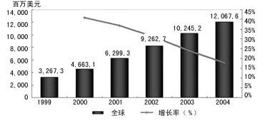 IDC預(yù)測,2004年CRM市場規(guī)模將達到121億美元,復(fù)合平均增長率為29.9%。而同期全球IT市場的復(fù)合平均年增長率為12%。