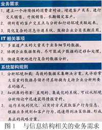為了獲得真正智能化的企業(yè)客戶管理,信息結構必須與商業(yè)智能無縫集成。圖1描述了與信息結構相關的業(yè)務需求。這種需求和結構引起的信息技術問題使得實現(xiàn)真正的集成化迫在眉睫。