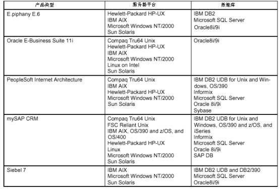 當(dāng)我們認(rèn)為支持領(lǐng)先的環(huán)境是“必須的”時(shí)候,支持第二層環(huán)境則是“必備的”。第二層環(huán)境例如:HP-UX 和IBM AIX服務(wù)器平臺、IBM和Sybase服務(wù)器管理系統(tǒng)。通過對比第二層環(huán)境,我們可以看出誰具備更廣的安裝環(huán)境。從上表我們可以看出,除了Oracle外都能夠支持一些“必備的”環(huán)境。Siebel和E.piphany支持“必備的”環(huán)境相對較少,而SAP最廣。