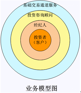 。。從上圖可以看出,現(xiàn)在的證券公司的經(jīng)紀(jì)業(yè)務(wù)為各個股民或者說投資者所提供的服務(wù)就是交易平臺的服務(wù),也就是交易通道服務(wù)。營業(yè)部的其他服務(wù)都是為這個交易通道服務(wù),這些服務(wù)品種都是非;A(chǔ)的。而營業(yè)部的數(shù)據(jù)流,也就是各個客戶的基本信息和交易信息,通過電腦部和財(cái)務(wù)部門就走到了終結(jié),沒有被更好的利用。