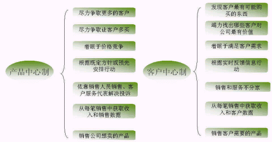 蓋洛普認(rèn)為新型的企業(yè)與客戶的關(guān)系應(yīng)當(dāng)是以"客戶為中心"與客戶的互動關(guān)系,通過滿足客戶需求提高客戶滿意度來吸引和留住客戶,從而建立和保持企業(yè)的競爭優(yōu)勢。這其實就是從產(chǎn)品中心制到客戶中心制的演變的體現(xiàn),如下圖: