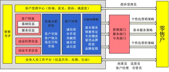 客戶投訴服務(wù)中心:在省公司設(shè)立集中的客戶投訴服務(wù)中心,為零售客戶提供投訴、咨詢服務(wù)等,在提高零售客戶滿意度的同時,也為煙草內(nèi)部的考核提供依據(jù)。