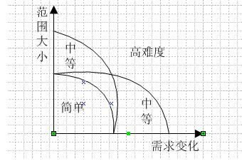 如對(duì)于一些成長(zhǎng)型的企業(yè),他們由于業(yè)務(wù)、客戶等等都處于一個(gè)成長(zhǎng)期,所以在項(xiàng)目的實(shí)施過(guò)程中,這個(gè)需求變化可能會(huì)比較頻繁。根據(jù)筆者的經(jīng)驗(yàn),一個(gè)成長(zhǎng)型的企業(yè),從需求提出到最后項(xiàng)目上線,中間可能50%以上的需求會(huì)進(jìn)行不同程度的調(diào)整。毋庸置疑,這就會(huì)給項(xiàng)目帶來(lái)不少的挑戰(zhàn)。從理論上說(shuō),實(shí)施顧問(wèn)遇到這種情況,應(yīng)該建議企業(yè)先暫時(shí)擱置這個(gè)項(xiàng)目。等到需求穩(wěn)定了,再上這個(gè)項(xiàng)目。但是實(shí)施顧問(wèn)往往不會(huì)這么做,因?yàn)檫@會(huì)影響到他們自己企業(yè)的業(yè)績(jī)。為此實(shí)施顧問(wèn)在遇到這種情況的時(shí)候,只有退而求其次了。即當(dāng)需求變化比較大的時(shí)候,只有通過(guò)縮小項(xiàng)目的范圍,來(lái)減少需求的絕對(duì)數(shù)量。需求的絕對(duì)數(shù)量減少了,那么需求的變化量也會(huì)降低。從而可以達(dá)到降低項(xiàng)目難度的目標(biāo),可以將項(xiàng)目的難度設(shè)置在中等難度這個(gè)級(jí)別。