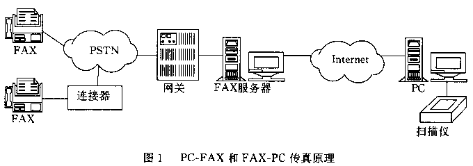 傳真機的基本工作原理是利用光電掃描技術(shù)將圖像、文字轉(zhuǎn)化為采用霍夫曼編碼方式的數(shù)字信號,經(jīng)V.27、V.29方式調(diào)制后,按T.30協(xié)議在模擬信道上傳輸。由于通信協(xié)議、信號格式的不同,傳真機是不能直接在Internet網(wǎng)上傳送信息的。要使連接在PSTN上的傳真機發(fā)出的信號在Internet網(wǎng)上傳輸,基本的原理則是在PSTN和Internet之間構(gòu)筑網(wǎng)關(guān),由網(wǎng)關(guān)進行協(xié)議的轉(zhuǎn)換,使PSTN網(wǎng)的傳真信號和Internet網(wǎng)的數(shù)據(jù)包可以相互轉(zhuǎn)換。
