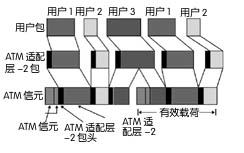 AAL-2為語(yǔ)音傳輸帶來(lái)的最重要的益處是它允許多路不同電話在單個(gè)虛擬通道上傳輸,從而更有效地使用ATM網(wǎng)絡(luò)。例如:當(dāng)同時(shí)處理4路電話時(shí),AAL-2從每個(gè)電話取得8比特,在為下一個(gè)信元的48比特有效載荷加信元頭之前,將它們復(fù)制為ATM的48比特有效載荷(見(jiàn)圖1)。這與ATM需要對(duì)每個(gè)電話的每一個(gè)信元加載全部有效載荷,然后再處理下一個(gè)電話不同,這種情況將引起網(wǎng)絡(luò)延時(shí)的回音效果,尤其是在ATM連接速度相對(duì)較低的時(shí)候。在處理語(yǔ)音傳輸時(shí),AAL-2的益處被鞏固了,因?yàn)樵谙嗤奶摂M通道上,沒(méi)有使用的帶寬可以被利用到數(shù)據(jù)傳輸中去。帶寬額外的利用來(lái)自用戶掛斷電話,來(lái)自語(yǔ)音壓縮或靜音(利用談話中的停斷)。