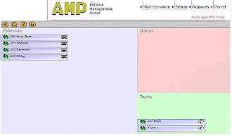 面板標(biāo)簽(圖8)是一個由Flash建立的操作面板,它包含有不同的extensions、隊列和中斷,并可允許你來查看誰在使用這個系統(tǒng),還可轉(zhuǎn)移呼叫、掛斷線路并可通過面板來建立電話會議。