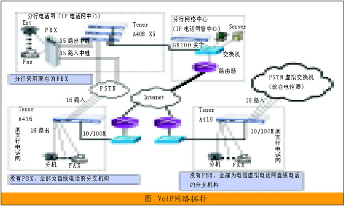 建立起VoIP后,可節(jié)省分行之間對打費(fèi)用、 分支機(jī)構(gòu)所在地的國內(nèi)長途費(fèi)用以及各點(diǎn)之間互發(fā)傳真的開銷,將來和總行的IP語音網(wǎng)絡(luò)互連時(shí),能形成覆蓋全國的IP電話網(wǎng)絡(luò)。IP語音網(wǎng)絡(luò)除了提供行內(nèi)辦公、業(yè)務(wù)和技術(shù)支持通話以外,也適用于數(shù)據(jù)集中后各種信用卡授權(quán)電話、投訴電話、電話銀行(以及呼叫中心)等用戶電話的接入,客戶和商戶不必?fù)艽蜷L途電話到省中心,而只需撥打到本地的IP語音網(wǎng)關(guān),大大降低運(yùn)營成本。