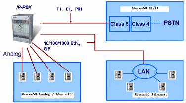 Abacus50系列產(chǎn)品分為Abacus50-Analog,Abacus50-E1/T1,Abacus50-Ethernet。其中,Abacus50-Analog具有2個(gè)FXO模擬接口,可以支持Loop-Start模擬協(xié)議,并支持MOS/PSQM/PESQ語音質(zhì)量分析;Abacus50-Analog支持的媒體方式包括音調(diào),話音,V.34Modem,T.30傳真等。Abacus50-E1/T1具有4個(gè)E1或者T1接口,可以支持SS7,ISDN-PRI,V5.1/V5.2,CAS(隨路信令)等PSTN信令,并支持MOS/PSQM/PESQ語音質(zhì)量分析;Abacus50-E1/T1支持的媒體方式同樣包括音調(diào)、話音和T.30傳真等。Abacus50-Ethernet具有兩個(gè)Ethernet接口(GE光口或者10/100/1000M電口),可以支持SIP/H.323/MGCP/H.248等VoIP協(xié)議,并支持MOS/PSQM/PESQ語音質(zhì)量分析;Abacus50-Ethernet支持的媒體方式包括音調(diào),G.711/G.723/G.726/G.729/AMR/AMR-WB/EVRC話音,T.30/T.38傳真,H.263/H.264視頻等。