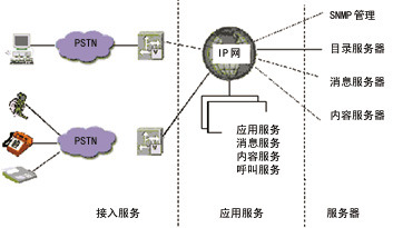 數(shù)據交換技術的發(fā)展使IP逐漸成為數(shù)字、語音等各種信息服務的網絡基礎標準。各種基于IP傳送話音、視頻的技術標準(如SGCP、VoIP等)也不斷提出并迅速統(tǒng)一。那么,基于IP的統(tǒng)一消息方案由兩部分組成:通用信息接收箱功能模塊和通用連接手段。通用信息接收箱功能模塊用于把所有形式的消息,如傳真、話音郵件、電子郵件等集成到一個IP網上的通用接收箱,用來提供給用戶一個公共平臺,來管理所有的消息。通用連接手段允許用戶通過電話網、DSL網、有線電視網和無線網,使用電話、PC、電子郵件客戶設備、Web瀏覽器、無線手持設備和PDA訪問通用信息接收箱。