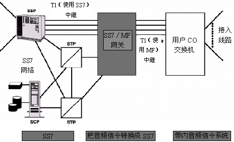 如圖14所示,SS7/MF網(wǎng)關(guān)可以實(shí)現(xiàn)SS7信令到MF(多頻)信令的轉(zhuǎn)換,使現(xiàn)有MF信令交換機(jī)無須升級(jí)就能擁有SS7信令能力;旌狭薙S7和基于音頻信令的呼叫建立環(huán)境能為各種運(yùn)營(yíng)商經(jīng)濟(jì)實(shí)用的SS7網(wǎng)絡(luò)接入方案,采用這一方案的有蜂窩電話運(yùn)營(yíng)商、本地電話運(yùn)營(yíng)商、長(zhǎng)途電話運(yùn)營(yíng)商和其它一些仍使用舊式交換機(jī)的電話運(yùn)營(yíng)商。