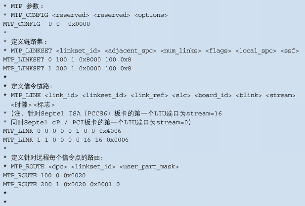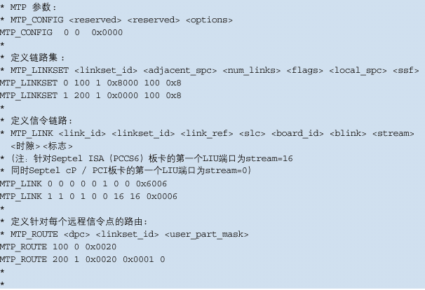 注意:這些不包括任何設(shè)置或定義信令板卡的命令,應(yīng)該象定義標(biāo)準(zhǔn)的非雙系統(tǒng)一樣定義! TP_ROUTE 參數(shù)針對ISUP而設(shè)置,在上例中用戶部分SI=5。