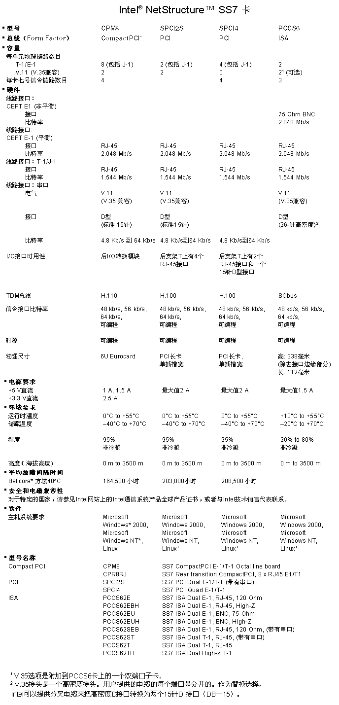 Dialogic SPCI2S和SPCI4卡都是PCI總線的七號信令卡。它們支持板上SS7共路信令協(xié)議,并帶有多達四個數(shù)字線路接口(T-1/E-1/J-1)和一個H.100