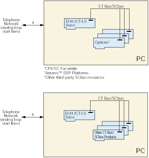 D/41JCT-LS板卡可以安裝在任何基于PCI的PC或服務(wù)器(PCI總線或混合PCI/ISA總線)以及兼容機(jī)(Dialogic386,Dialogic486,或奔騰處理器的PC平臺(tái))上。D/41JCT-LS板卡提供了創(chuàng)建4端口到32端口的集成語(yǔ)音方案所需的任何功能。所支持線路的最大數(shù)目依賴于應(yīng)用程序、所需磁盤I/O的總數(shù)以及主機(jī)CPU和電源。